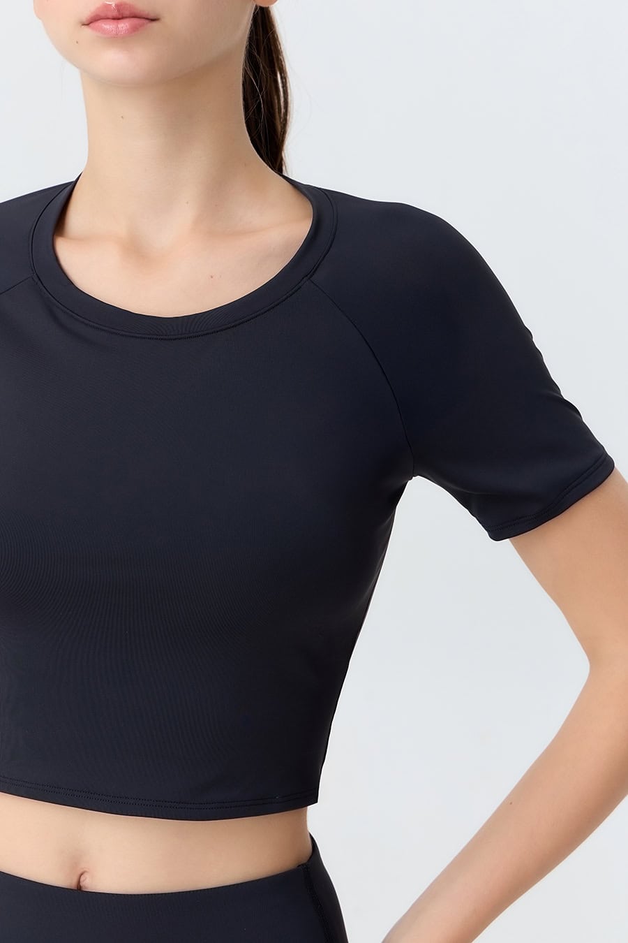 “Barre Bratop” is a chic top perfect for Pilates, barre, or any studio class. Its short sleeves and a sleek cropped silhouette beautifully flatter your form, especially when paired with our Studio Tights for a coordinated, studio-ready look. Barre Bratop comes with built-in bra and removable push-up pads.