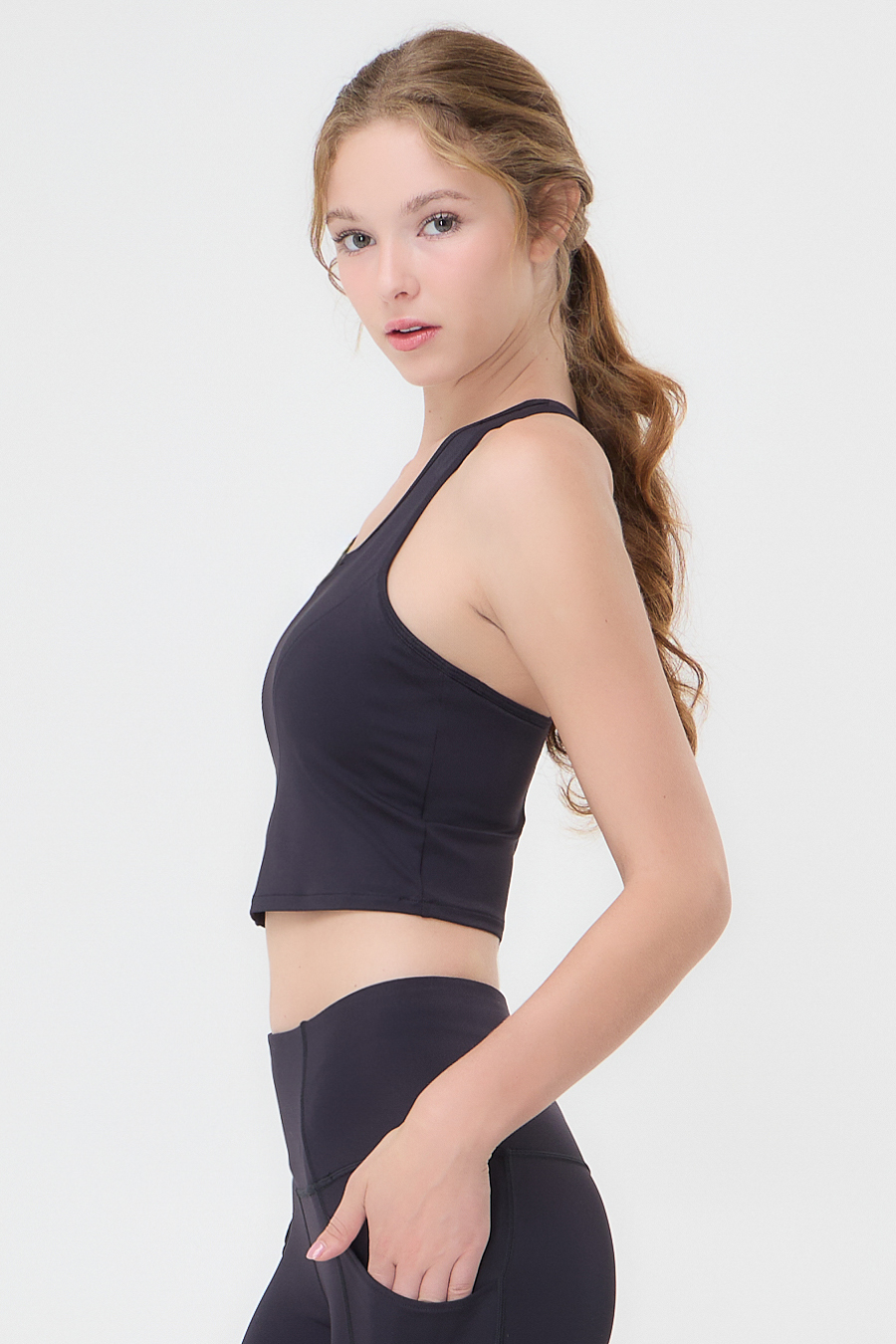 The most-loved crop sports bra is back in new colors! Designed for both style and functionality, “Block Bra” features a distinctive diagonal cut to beautifully contours your shape and enhances your natural curves. The crop silhouette and high neck design offer added coverage and support, while the racerback provides unrestricted range of motion.