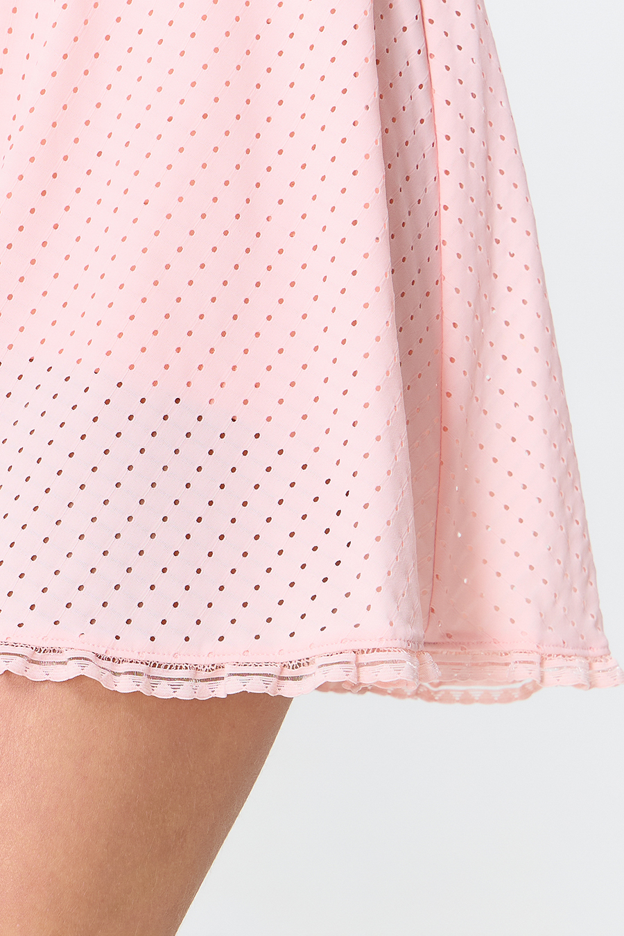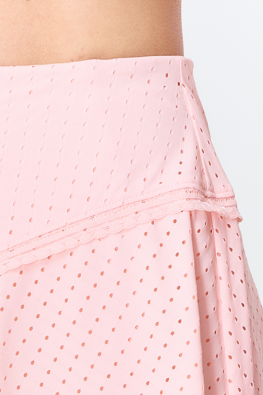 - A-line skorts made of exquisite perforated fabric for graceful twirl