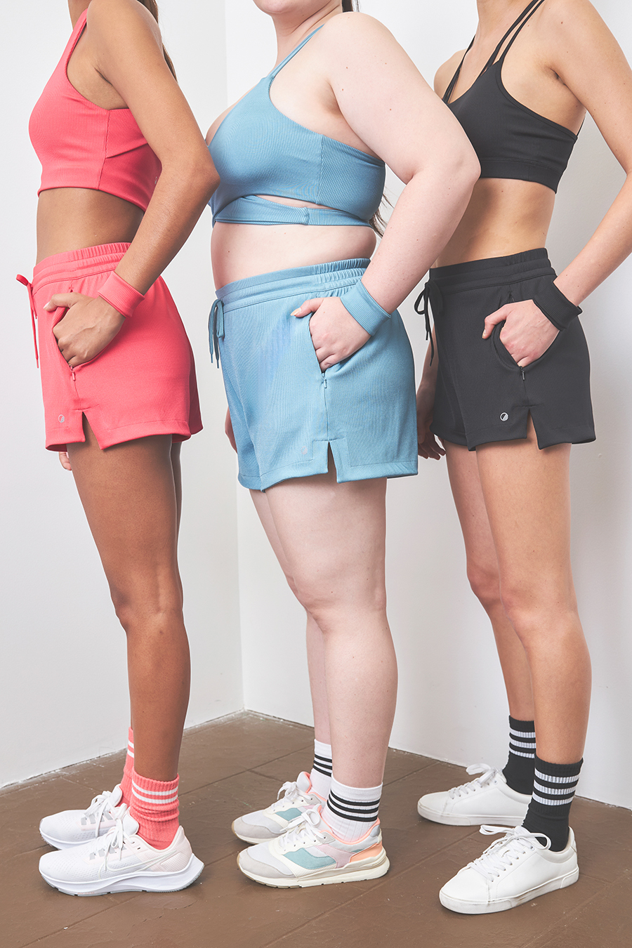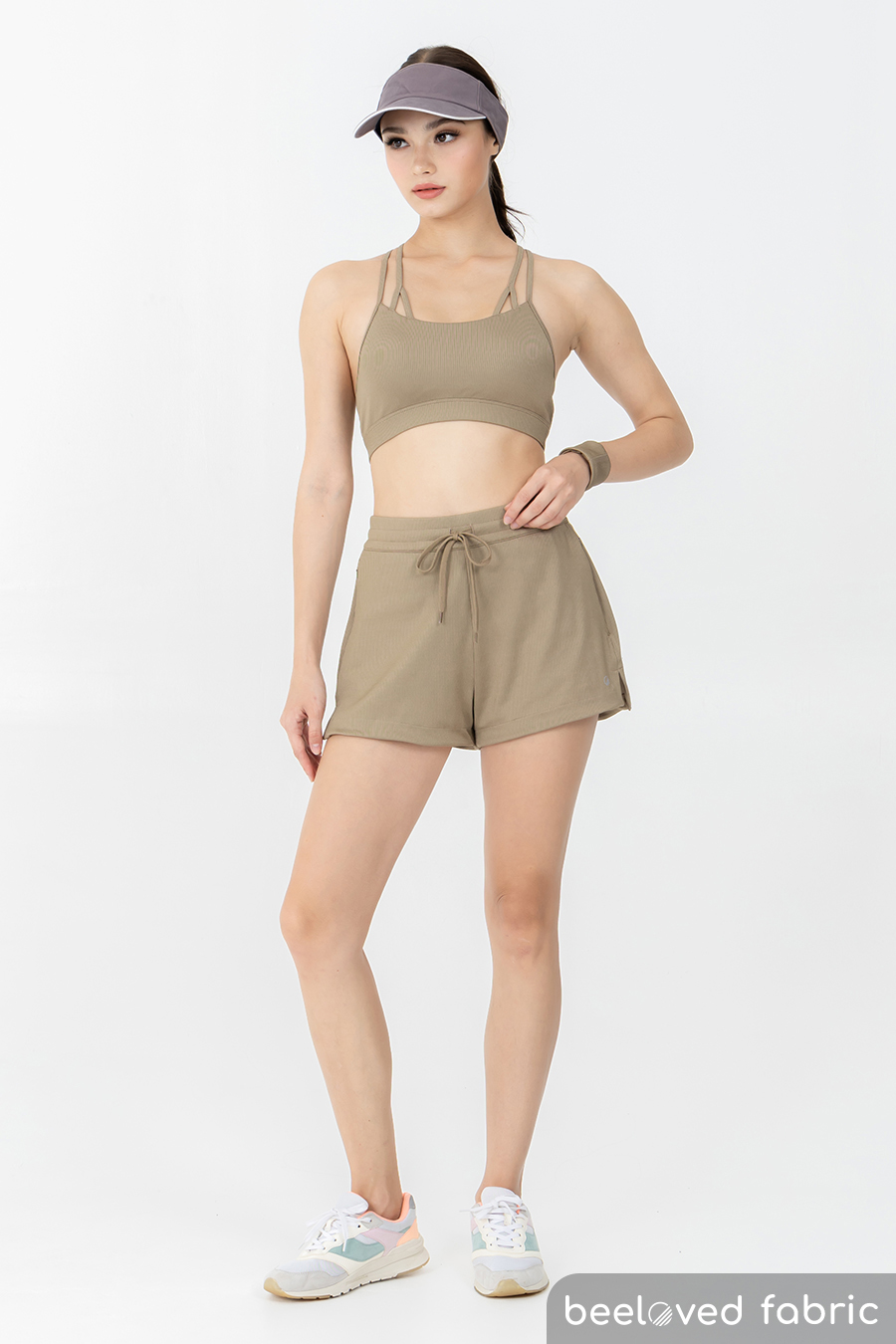 “Evie Rib Shorts” combines a casual flair with performance. High waist, A-line, and ribbed texture offer stylish and laid-back vibes to these sports and swim shorts. Their double-layer construction also keeps you secured for both workouts and water activities. Equipped with elasticated waistband and adjustable drawcord for customized fit, and two side pockets with zipper to keep all belongings on the go.