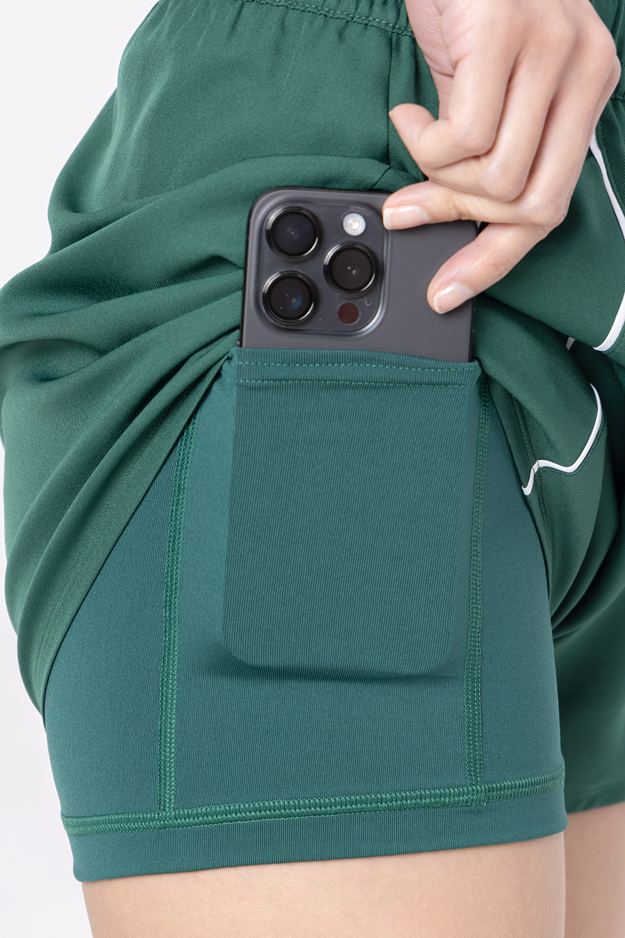 Field Skorts are made of “Beeloved“ fabric with UV protection, 4-way stretch, sweat wicking, and anti-odor functions. They also come with one side pocket at the outer skirt plus two hidden pockets at the inner shorts, so you can secure your a couple tennis balls, some golf gloves, or a mobile phone.