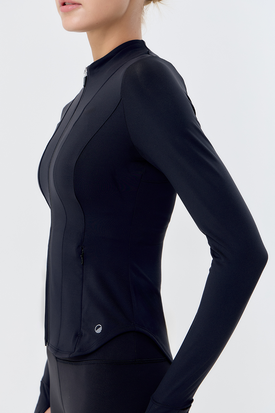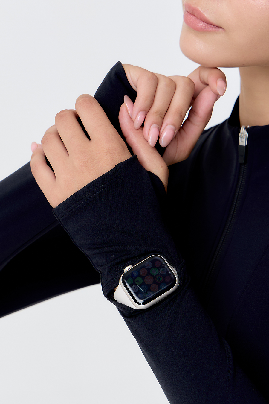 Crafted from our premium “SmoothTec” fabric, it delivers a buttery-smooth feel against your skin, along with 360° stretch, odor control, and speed-dry technology for a luxurious yet high-performance experience. The slim-fit silhouette and curved hem enhance your natural shape, while the full front zip allows for easy on and off. It also comes with thumbholes, cuff openings for watch access, and two zip pockets.