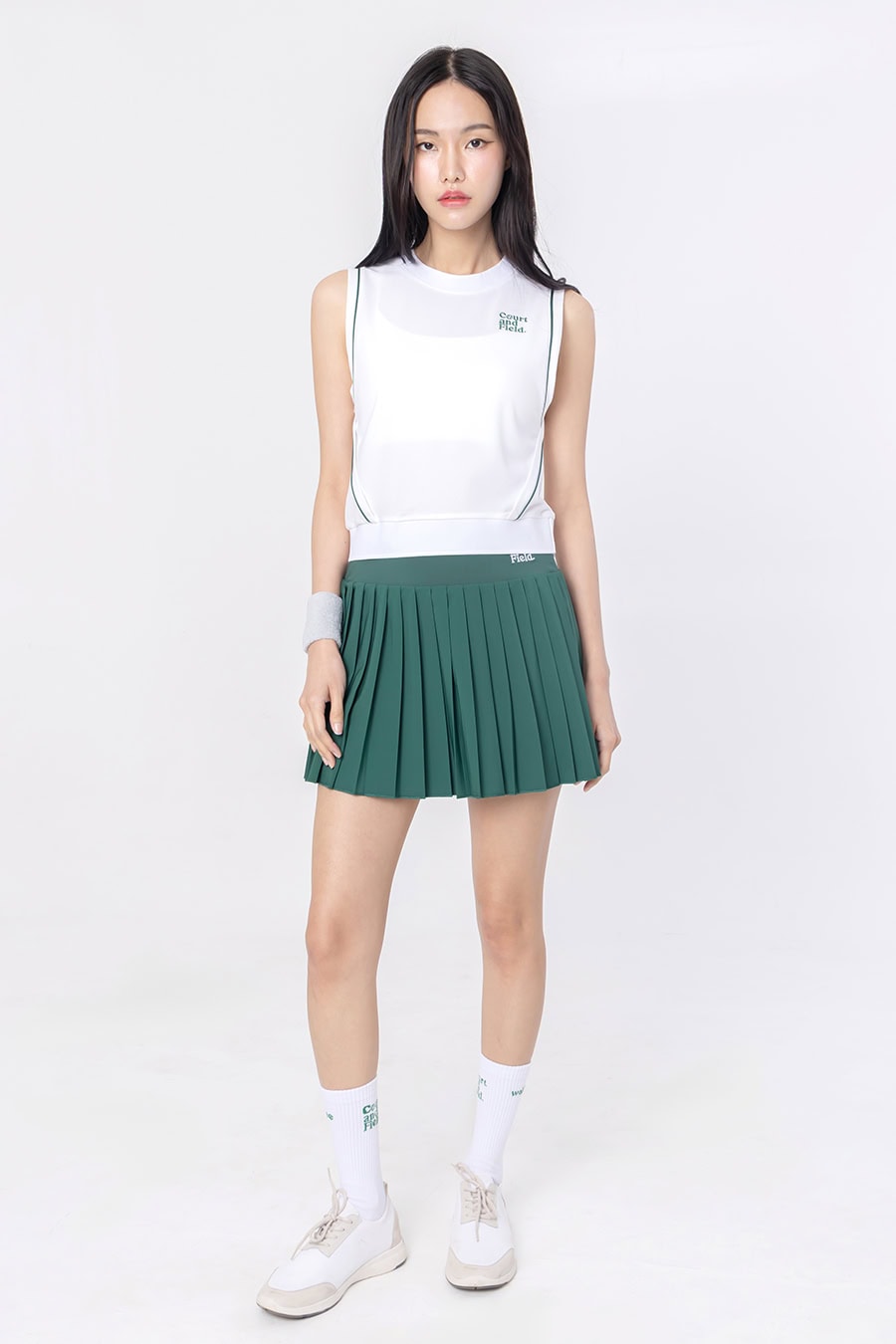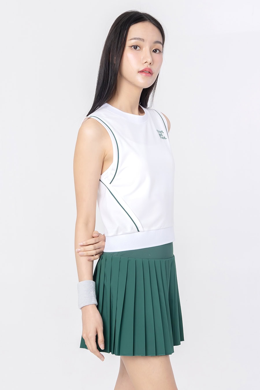 “Fore Vest”, a versatile sleeveless crop top that transitions seamlessly from court to street. Comes in crop silhouette and ribbed hem for perfect fit and flattering frame. Stylish contrast piping and collection embroidery provide unique details to complete this retro sporty look.