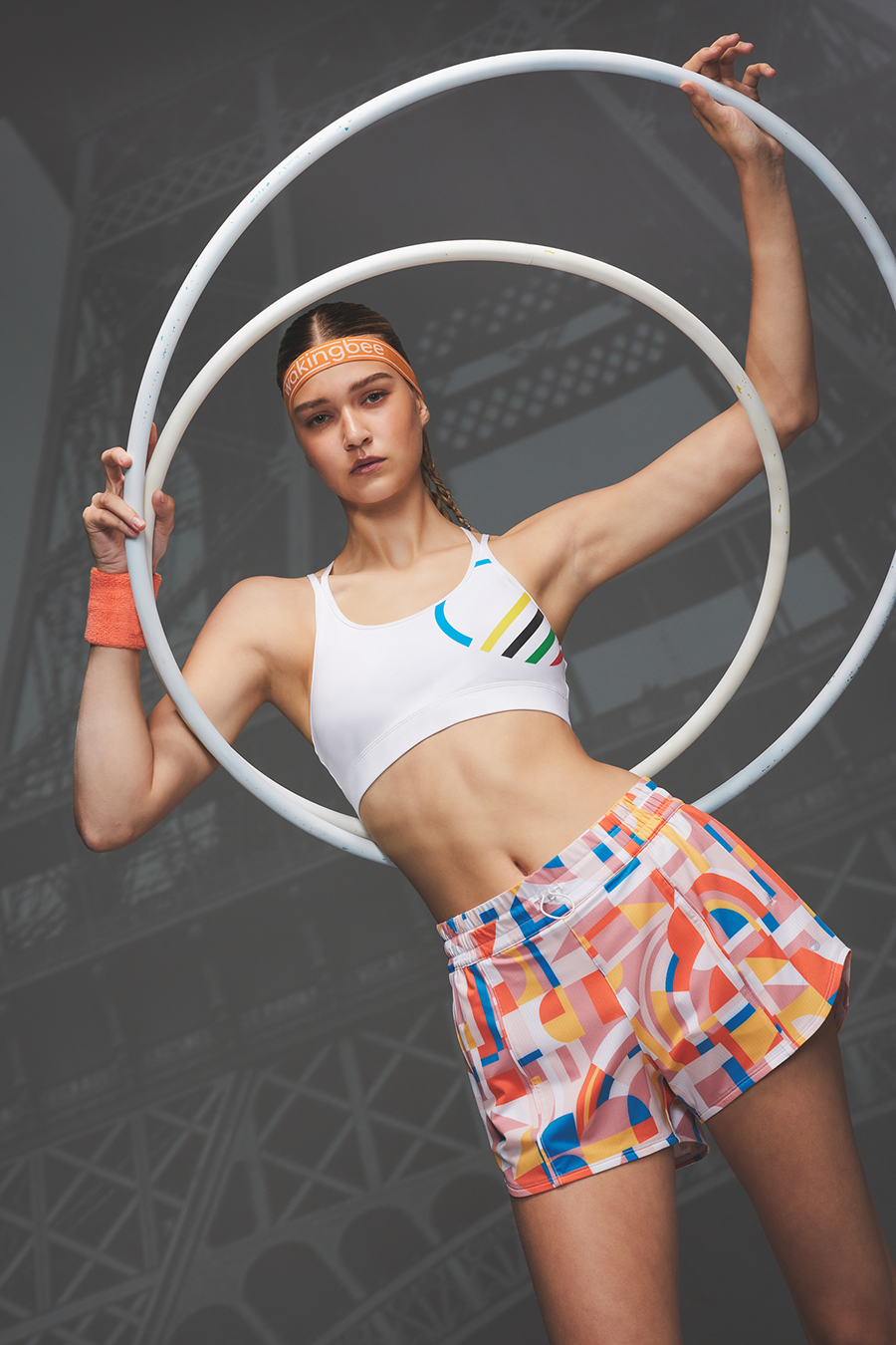 “Louvre Shorts” is a playful and functional piece to elevate your sports look. These double-layer shorts feature a distinctive curvy hem on the sides, stylish grid-textured fabric, and decorated with color-contrast piping lines inspired by the Paris Games 2024 colors. They also come with flat waistband for leaner abs and a trendy stopper for adjustable fit.