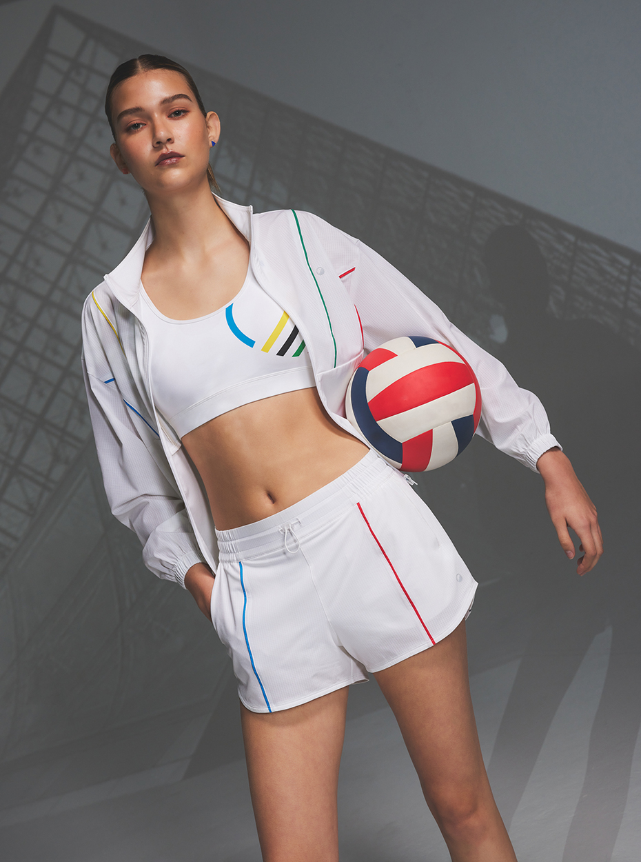 - Special design with curvy hem, grid-textured fabric, and color-contrast lines inspired by the Paris Games 2024 colors