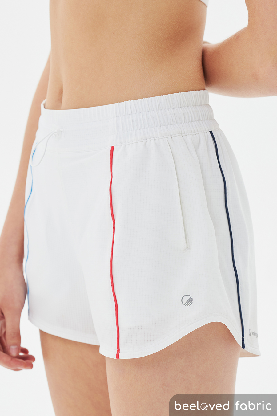 “Louvre Shorts” is a playful and functional piece to elevate your sports look. These double-layer shorts feature a distinctive curvy hem on the sides, stylish grid-textured fabric, and decorated with color-contrast piping lines inspired by the Paris Games 2024 colors. They also come with flat waistband for leaner abs and a trendy stopper for adjustable fit.