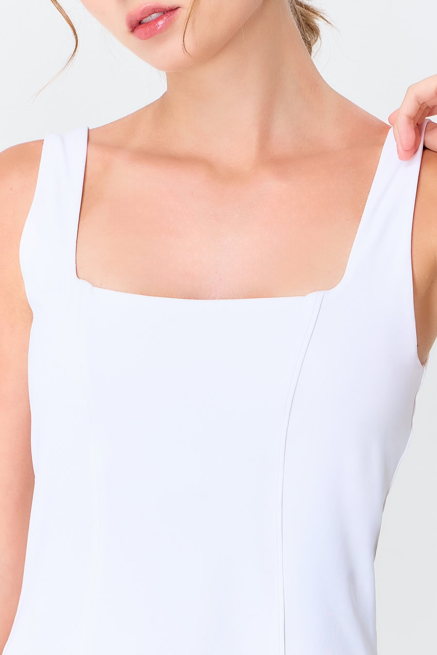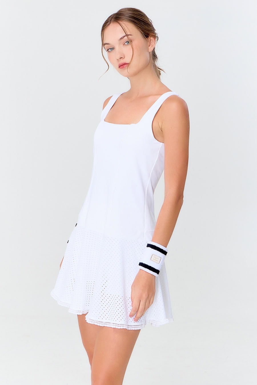 Fall in love at first wear with “Love Dress”, designed to move beautifully with you wherever the day takes you. Featuring a flattering silhouette with a square neckline, fitted bodice, and flowy flare skirt, this sport dress enhances your shape while offering effortless elegance. The lace-detailed hemline adds a romantic touch and creates a perfect twirl with every step.