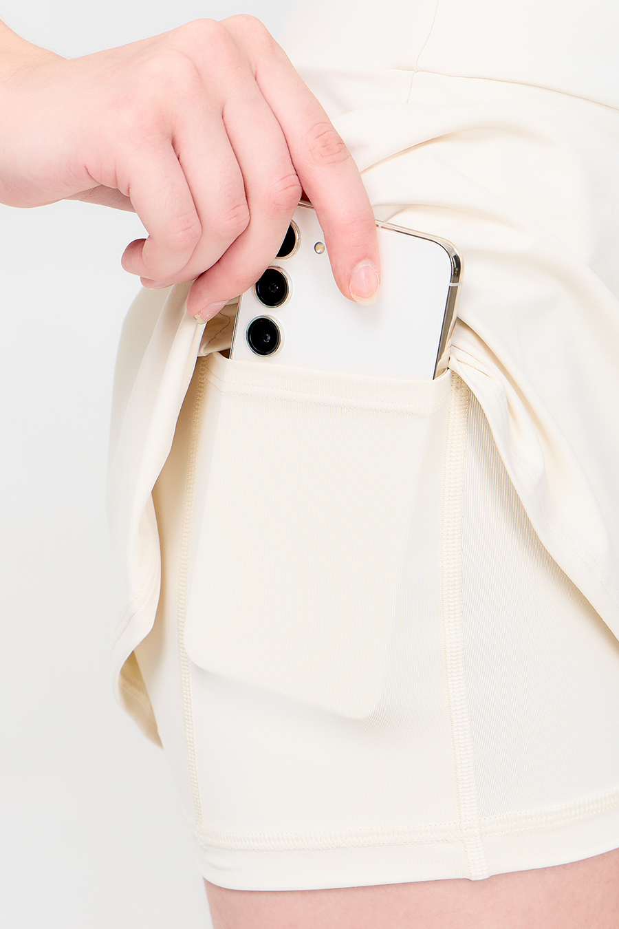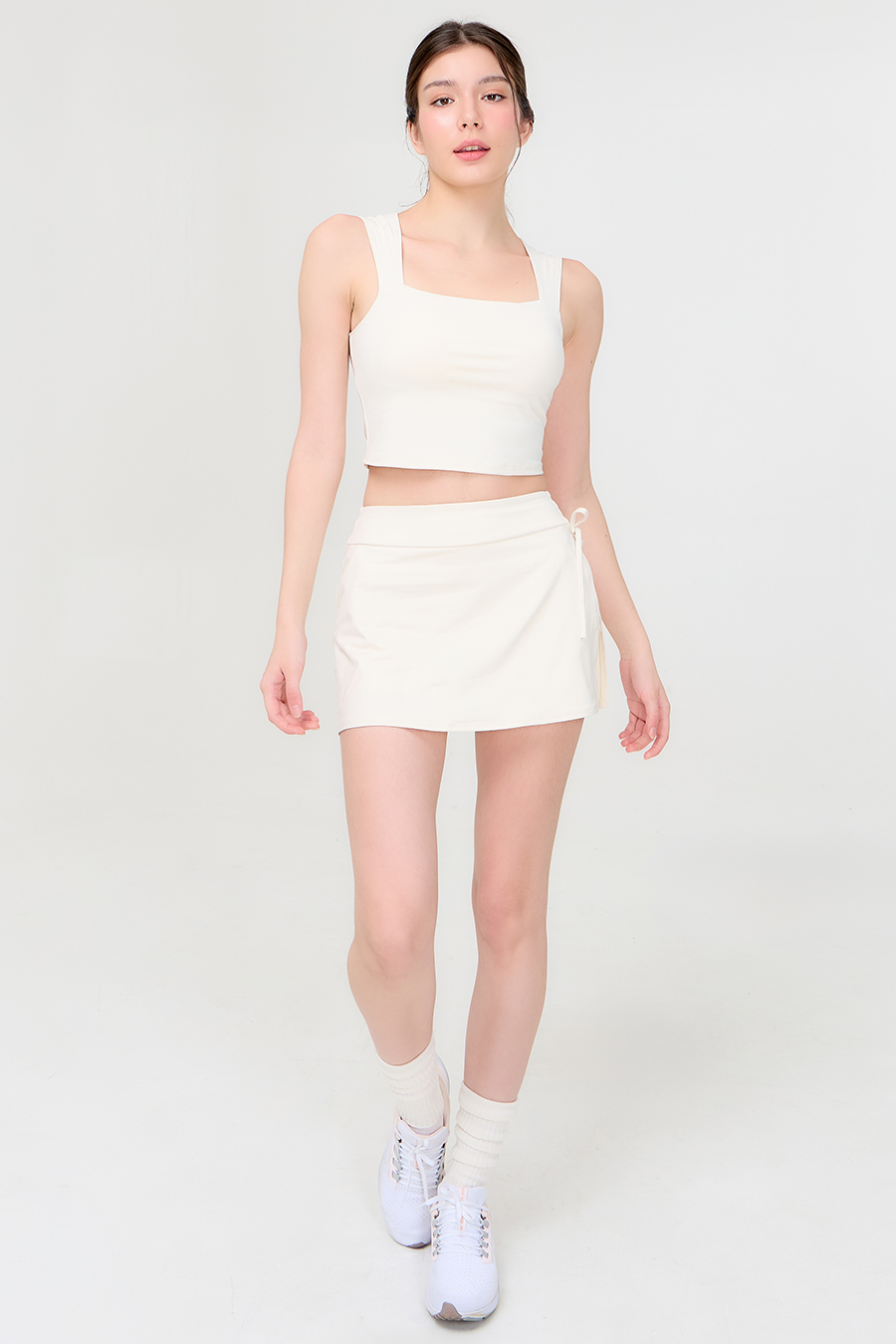 Designed for both swim and sweat, “Mila Skorts” bring together style and functionality in one effortless piece. With a double-layered construction, Mila Skorts offers the coverage of shorts with the chic appeal of a skirt. The inner layer features a side pocket to keep your essentials close at hand. The side split and ribbon tie add a playful and feminine touch, making them perfect for any active day.