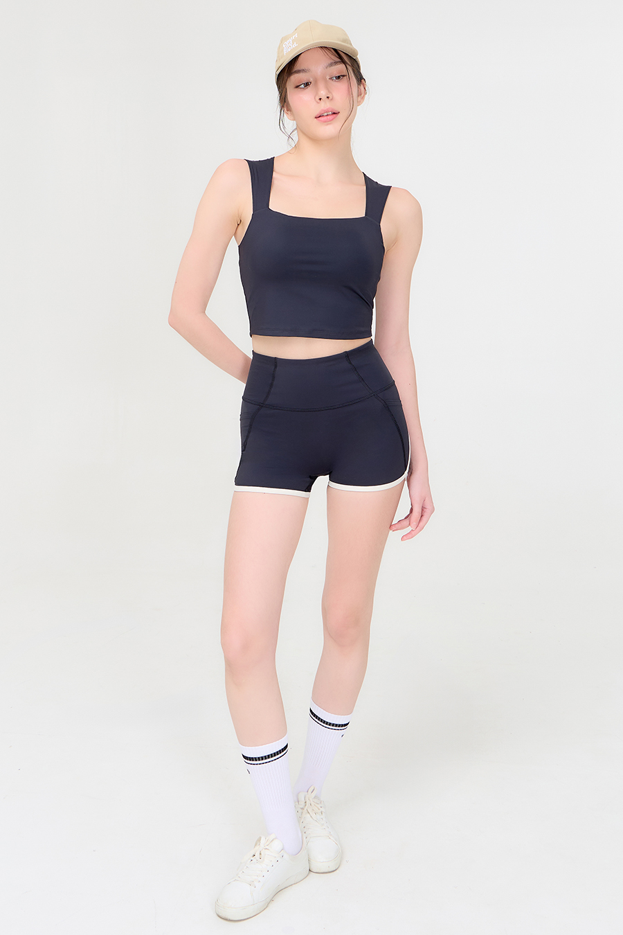 “Rebel Biker” is a sleek, above-the-knee biker shorts designed for both performance and style. Featuring a high-waisted fit with a tummy control panel, it provides a smooth, sculpting effect. No-front-seam design keeps the minimal look. The piping hem detail enhances your curves for a flattering silhouette. Two side pockets provide storage for your phone and essentials.