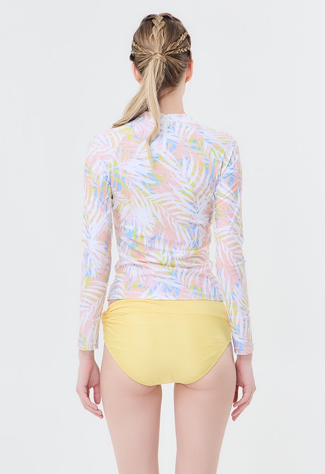 “Rio Bratop” is a perfect companion for water activities, seamlessly blending convenience, style, and functionality. This crop-length rashguard with built-in bra features a front zipper that effortlessly zips through, providing both practicality and a touch of flair. Its long sleeves are designed for optimal sun coverage. The beautiful prints add a touch of vibrancy, making the Rio Bratop a standout choice for those who crave both fashion and performance.