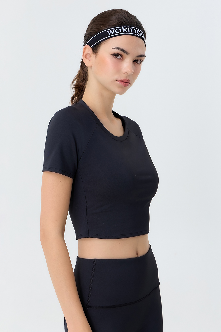 - เสื้อพร้อมบราในตัว ดีไซน์เรียบสวยด้วยแขนสั้นและทรงคร้อปเข้ารูป