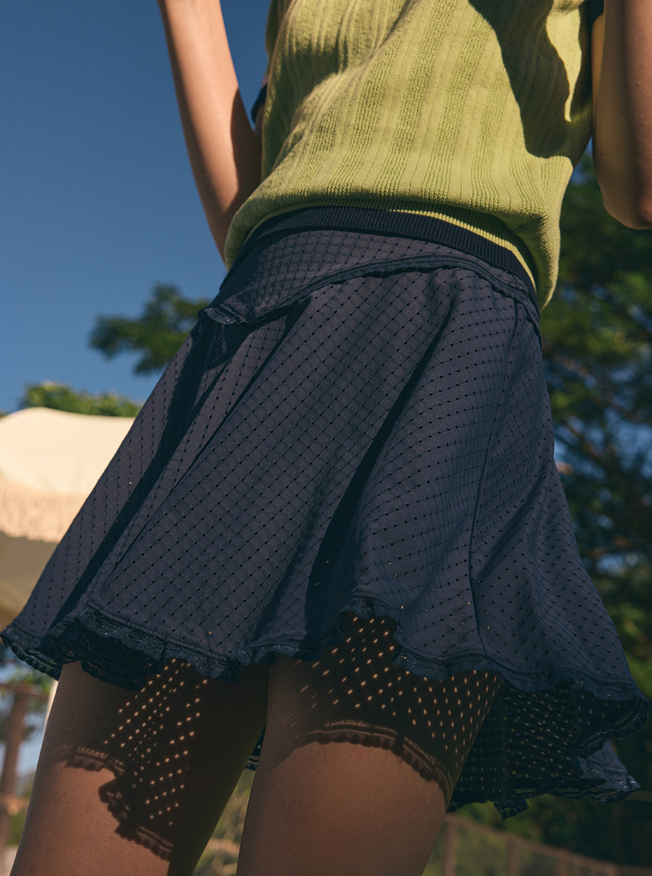 เสิร์ฟทั้งสไตล์และความคล่องตัวไปพร้อมกันกับ “Court Skorts” กระโปรงออกกำลังกายดีไซน์เก๋ที่ช่วยเติมความมั่นใจให้ทุกย่างก้าว มาในทรงเอไลน์ที่ใส่แล้วพลิ้วสวย ทำจากผ้าลายฉลุสุดพิเศษ เพิ่มดีเทลตะเข็บโค้งและชายกระโปรงแต่งลูกไม้ ให้ลุคหวานละมุนในแบบซิกเนเจอร์ของ Janesuda