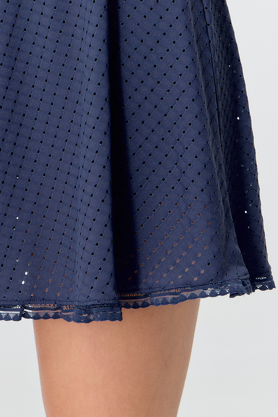- กระโปรงสปอร์ตทรงเอไลน์ ผลิตจากผ้าลายฉลุเนื้อพิเศษ โปร่งสบายและพลิ้วสวย