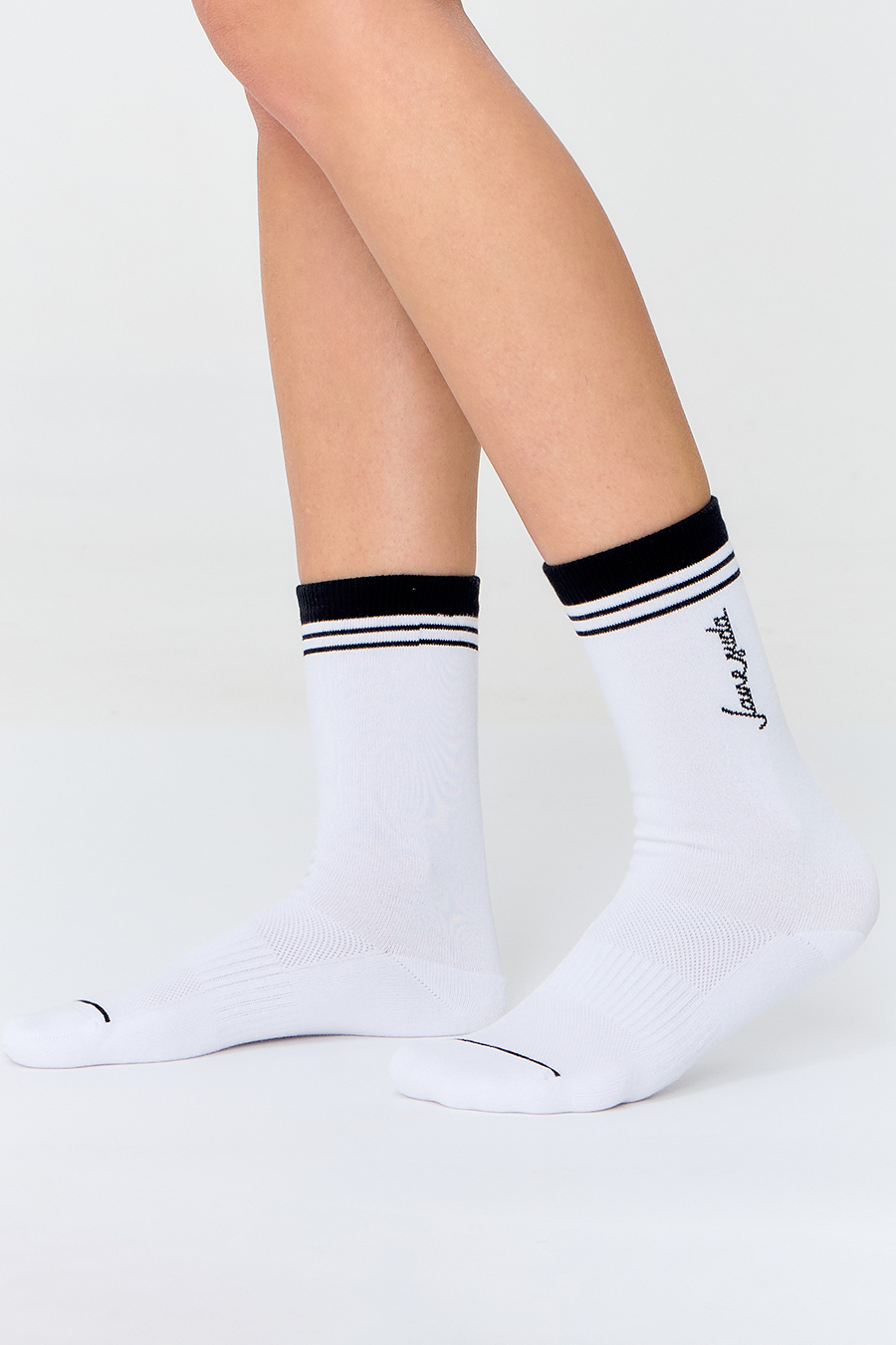- ดีเทลตะเข็บโค้งและชายกระโปรงออกกำลังกายแต่งลูกไม้ ให้ลุคเฟมินีนในแบบซิกเนเจอร์ของ Janesuda