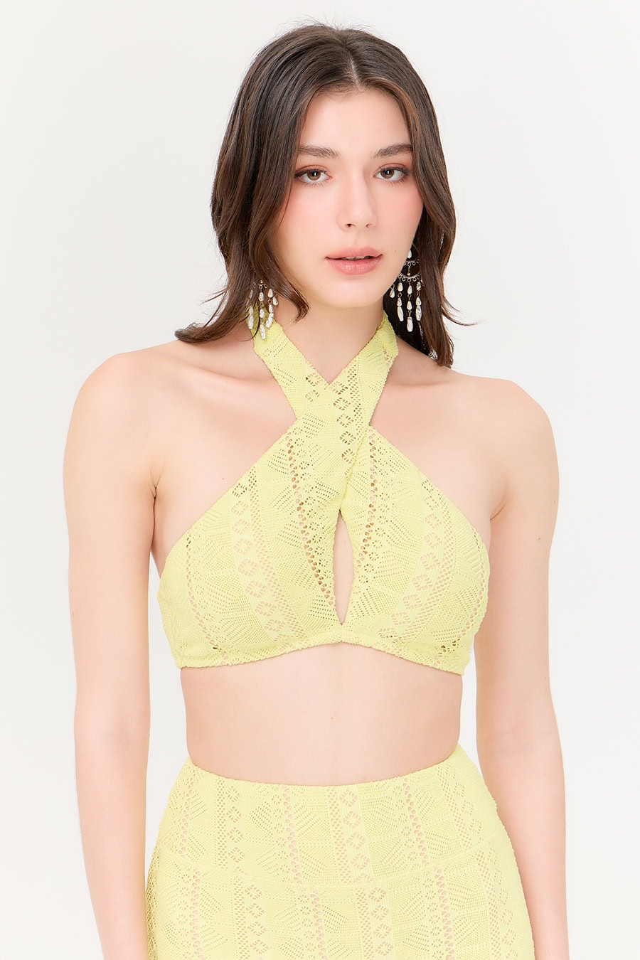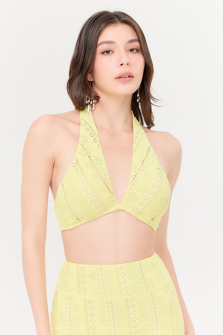 Island Bra ผลิตจากผ้าถักลูกไม้ที่ให้ลุคเฟมินีนแต่ยังคงฟังก์ชันครบครัน ด้วยซับในไนลอนที่มีคุณสมบัติป้องกันรังสียูวี ยืดหยุ่นสี่ทิศทาง แห้งไว และป้องกันกลิ่นอับ ทนต่อการใช้งานในน้ำสระและน้ำทะเล มาพร้อมฟองน้ำเสริมที่สามารถถอดได้