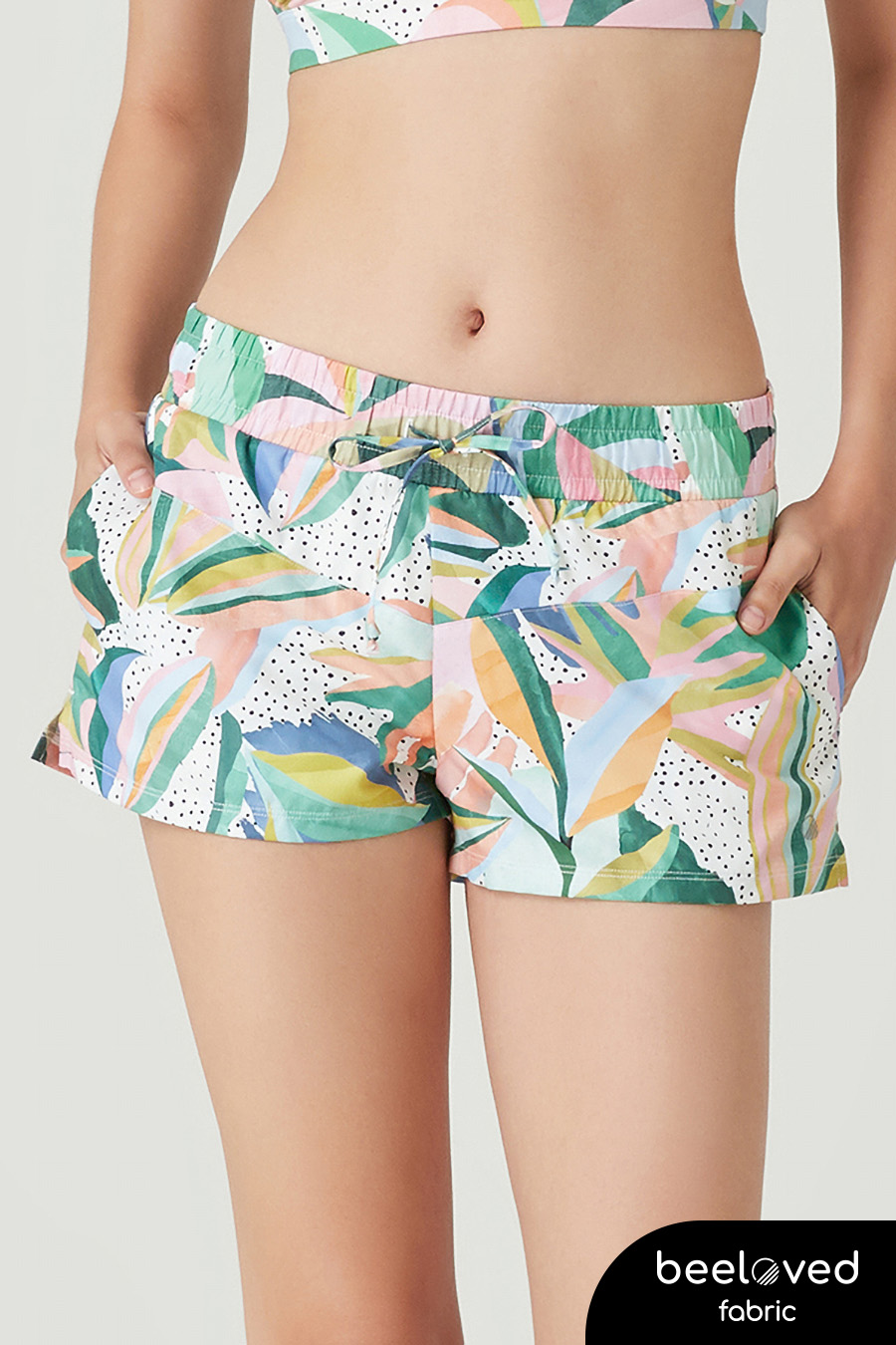 Shoreline Shorts ทำจากผ้า Beeloved fabric ผ้าคัดสรรพิเศษที่มีคุณสมบัติป้องกันรังสียูวี ยืดหยุ่นสี่ทิศทาง ระบายเหงื่อไว และป้องกันกลิ่นอับ และยังผ่านการทดสอบว่าทนต่อการใช้งานในน้ำสระและน้ำทะเล จึงใส่ได้ทั้งออกกำลังกายและว่ายน้ำ