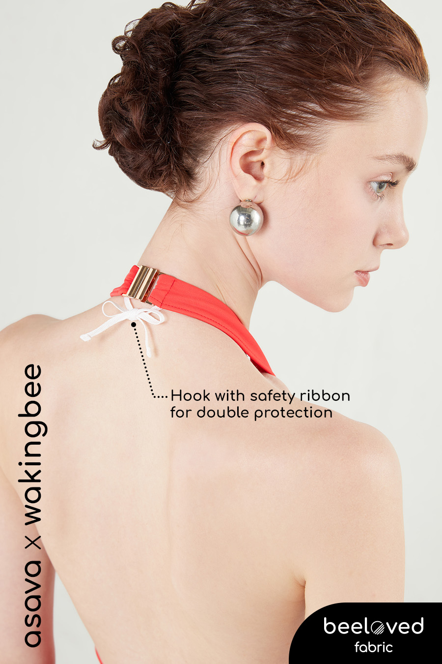 - ชุดว่ายน้ำวันพีซดีไซน์เรียบหรูโดย Asava ที่มาพร้อมทรงคอสูงและตัดต่อเปิดช่องที่ด้านหน้า