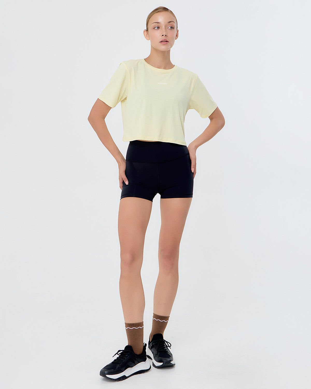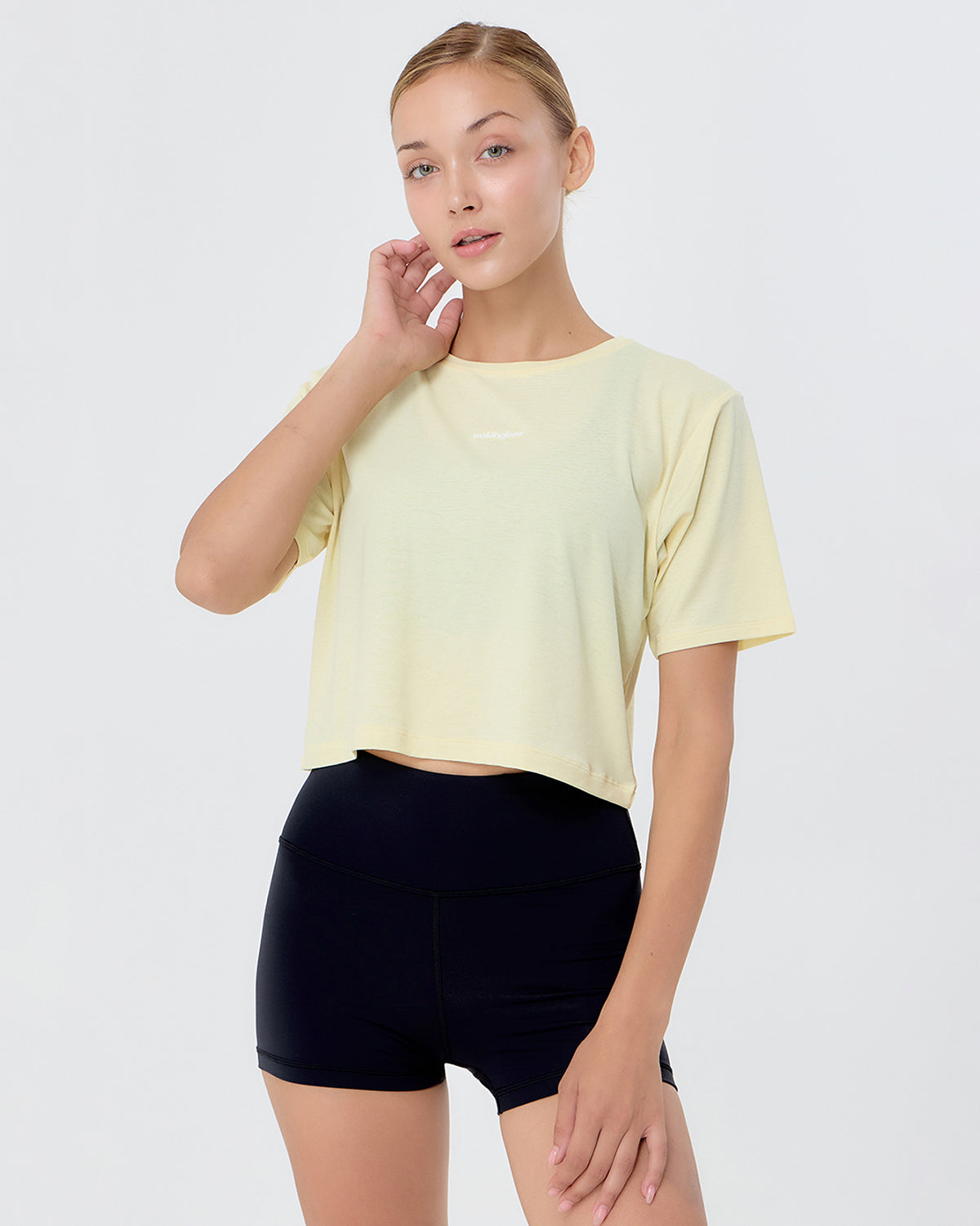 Breeze through your workout in style with “Crop Tee.” This lightweight layer is made from airy breathable fabric to keep you cool and comfortable through every sport activity. The short sleeves offer just the right amount of coverage, while the cropped length delivers a fresh, modern-chic edge.
