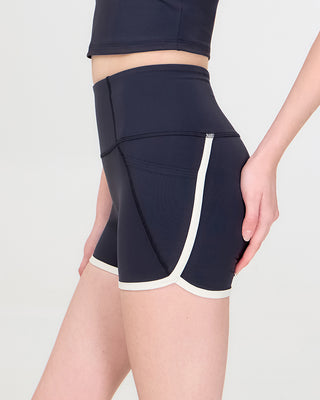 '"Rebel Biker" is a sleek, above-the-knee biker shorts designed for both performance and style. Featuring a high-waisted fit with a tummy control panel, it provides a smooth, sculpting effect. No-front-seam design keeps the minimal look. The piping hem detail enhances your curves for a flattering silhouette. Two side pockets provide storage for your phone and essentials.
