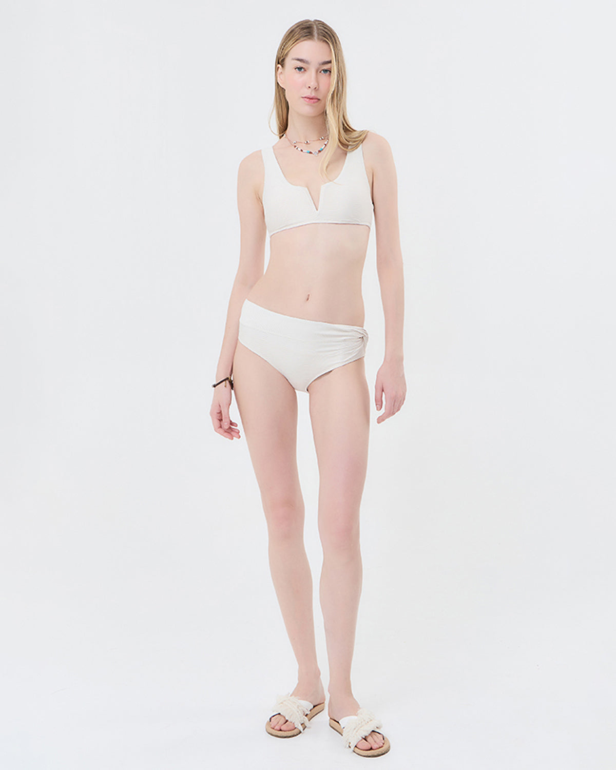 "Tide Bikini" will become your new favorite swim essential, effortlessly blending coverage and style. With its ideal mid-rise waistline and flattering back coverage, it provides the perfect balance of comfort and confidence. There is also a stylish side twist detail that elevates your beach look.