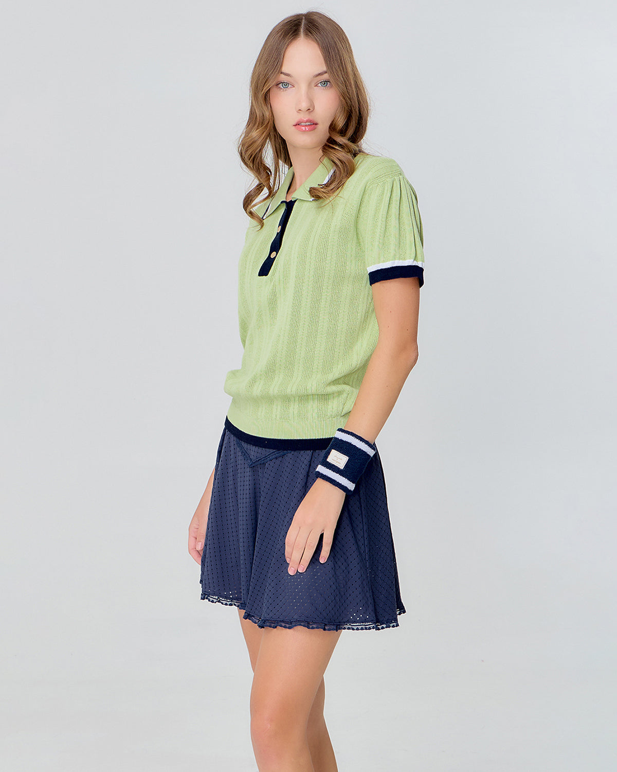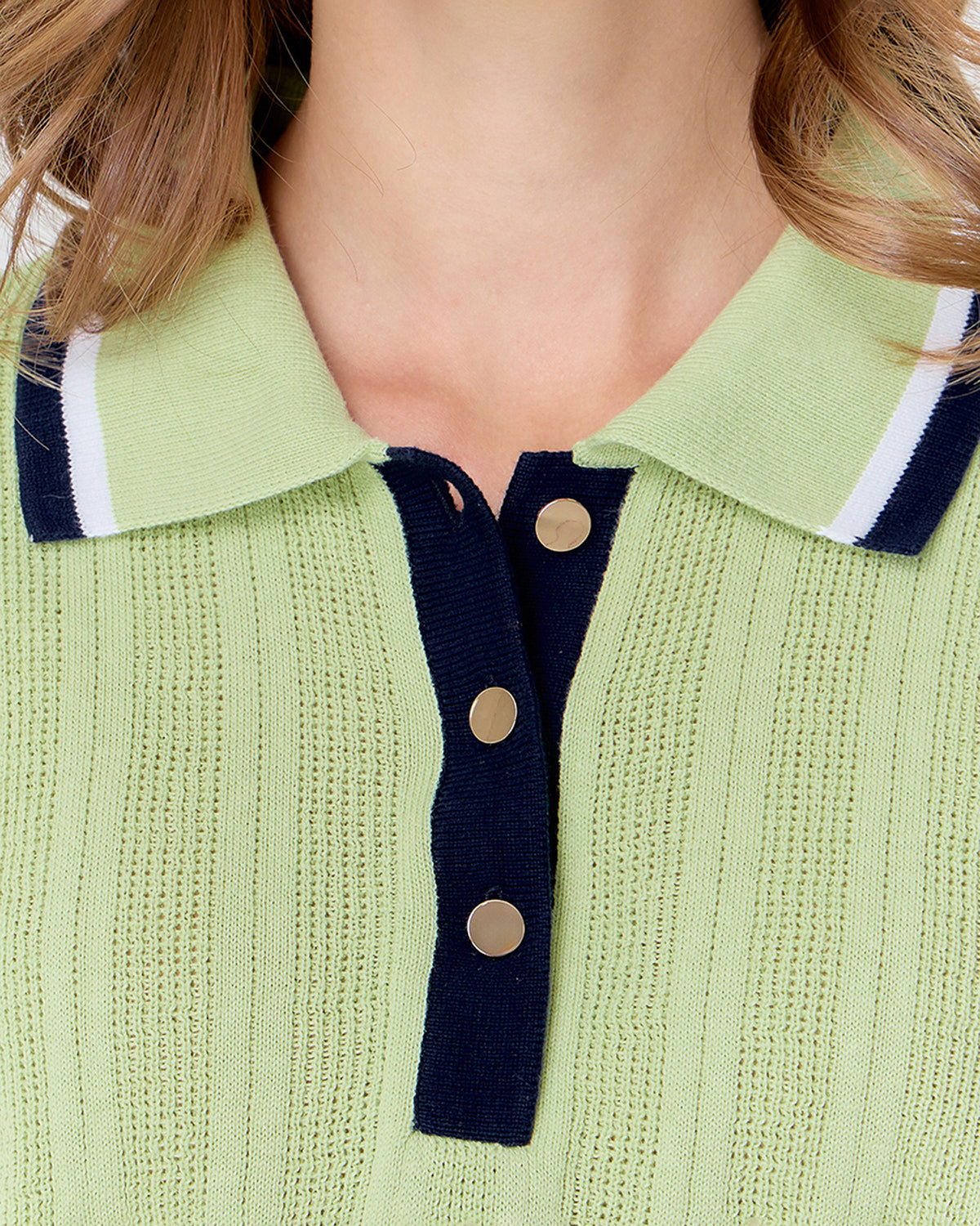 ตกแต่งด้วยดีเทลกระดุมสีทองช่วยเพิ่มความหรูอย่างพอดี เนื้อผ้าถักแบบพิเศษให้สัมผัสโปร่งสบาย ใส่ได้ตลอดวัน เป็นไอเท็มที่บาลานซ์ความเนี้ยบและฟังก์ชั่นได้อย่างลงตัว จะจับคู่กับ Serve Skorts หรือ Court Skorts ก็ได้ลุคที่สวยเพอร์เฟคและมีสไตล์