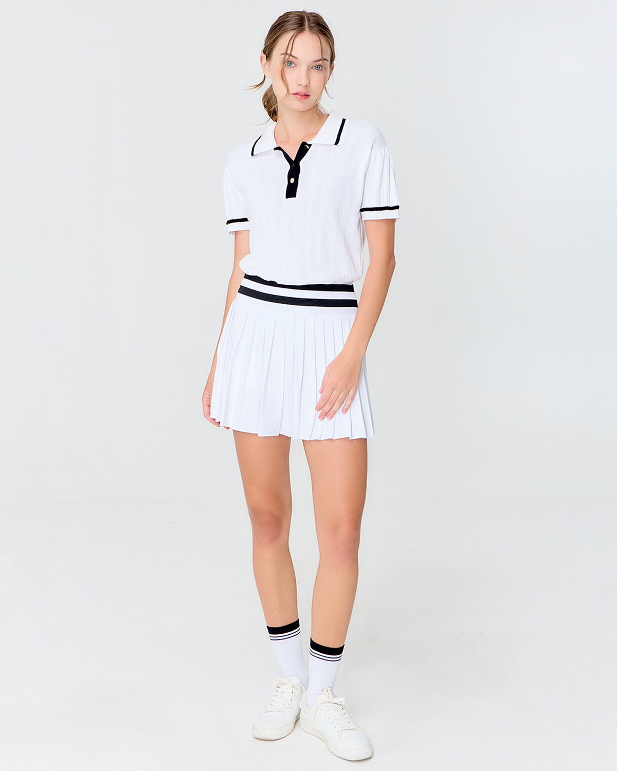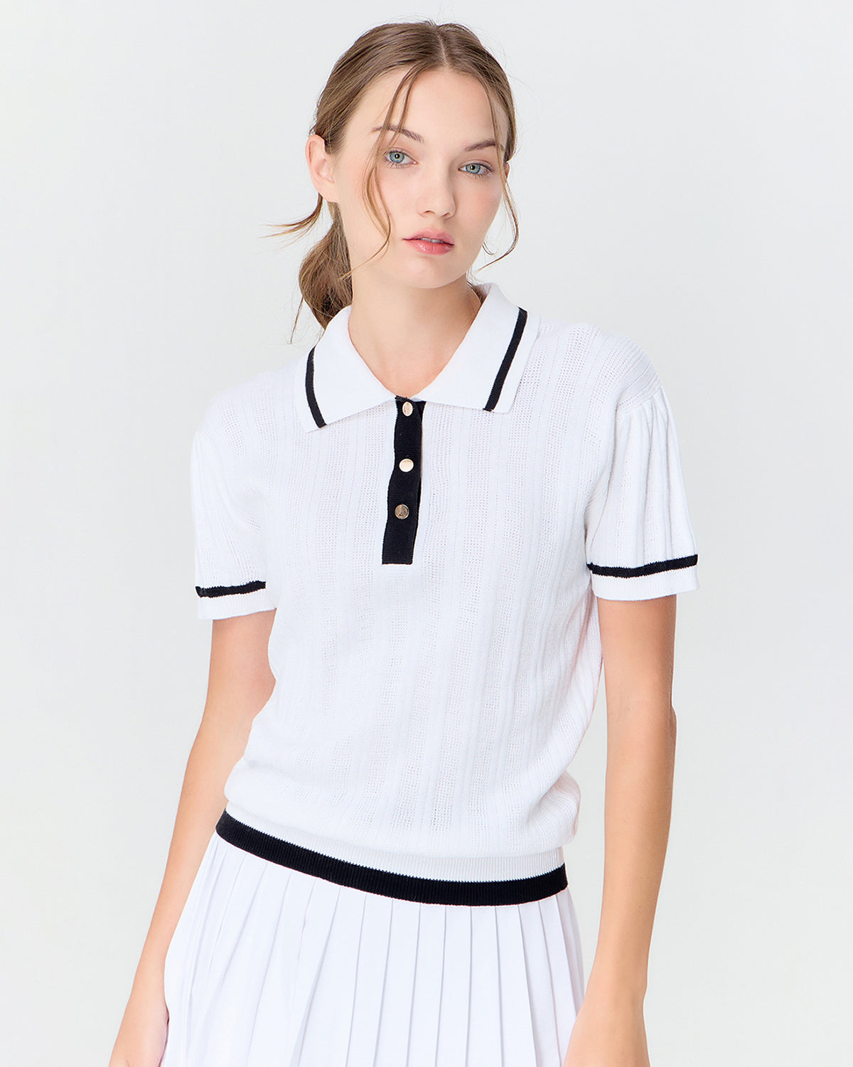 ตกแต่งด้วยดีเทลกระดุมสีทองช่วยเพิ่มความหรูอย่างพอดี เนื้อผ้าถักแบบพิเศษให้สัมผัสโปร่งสบาย ใส่ได้ตลอดวัน เป็นไอเท็มที่บาลานซ์ความเนี้ยบและฟังก์ชั่นได้อย่างลงตัว จะจับคู่กับ Serve Skorts หรือ Court Skorts ก็ได้ลุคที่สวยเพอร์เฟคและมีสไตล์