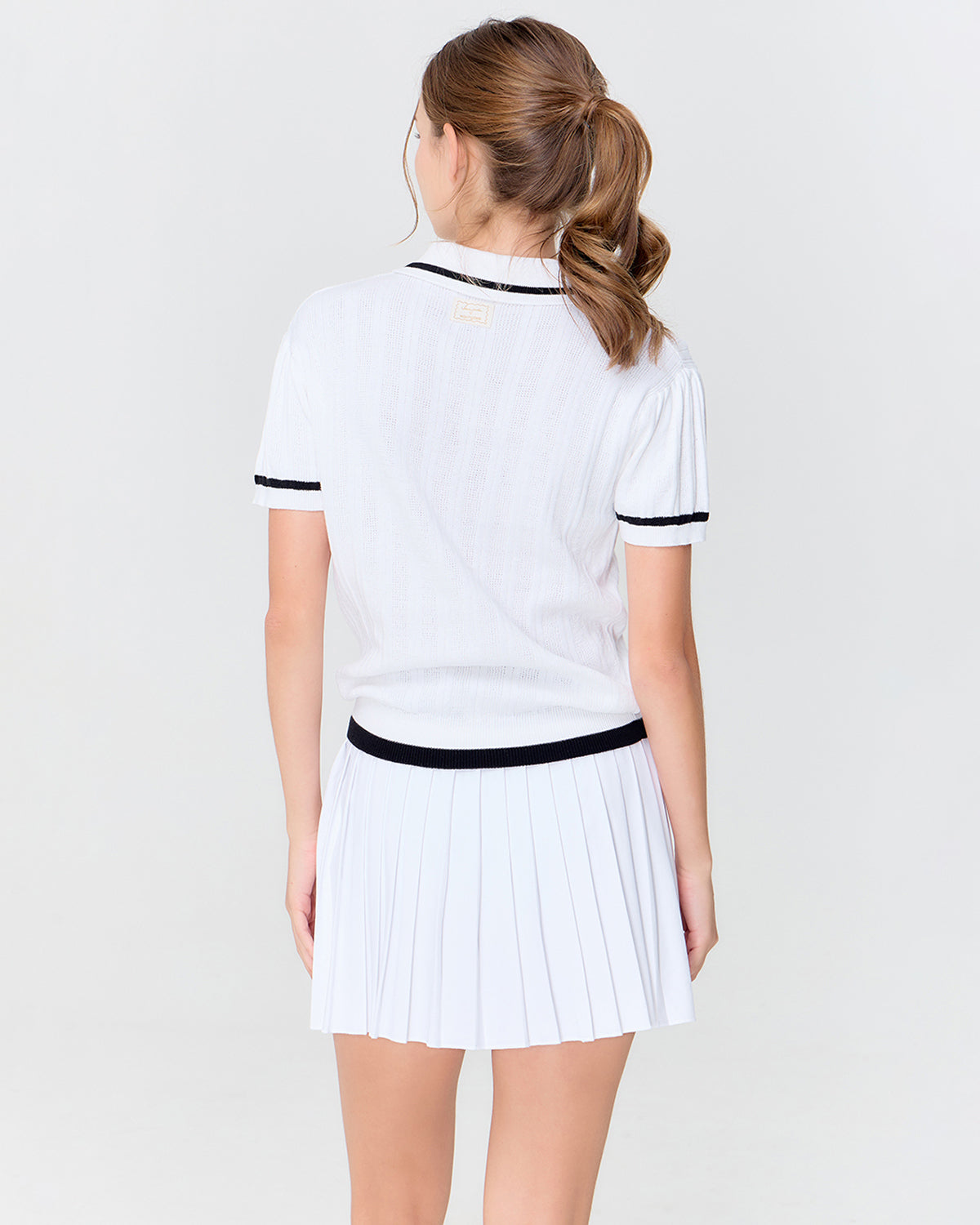 เพิ่มเสน่ห์แบบคลับเฮาส์ชิค ด้วย "Ivy Knit" เสื้อถักดีไซน์เรียบโก้ที่หยิบมาใส่เมื่อไรก็ดูดี มาพร้อมปกโปโลแต่งลายทางให้ลุคสวยคลาสสิค และแขนสั้นทรงพองเล็กน้อยช่วยให้ช่วงไหล่ดูละมุนและเฟมินีนมากขึ้น